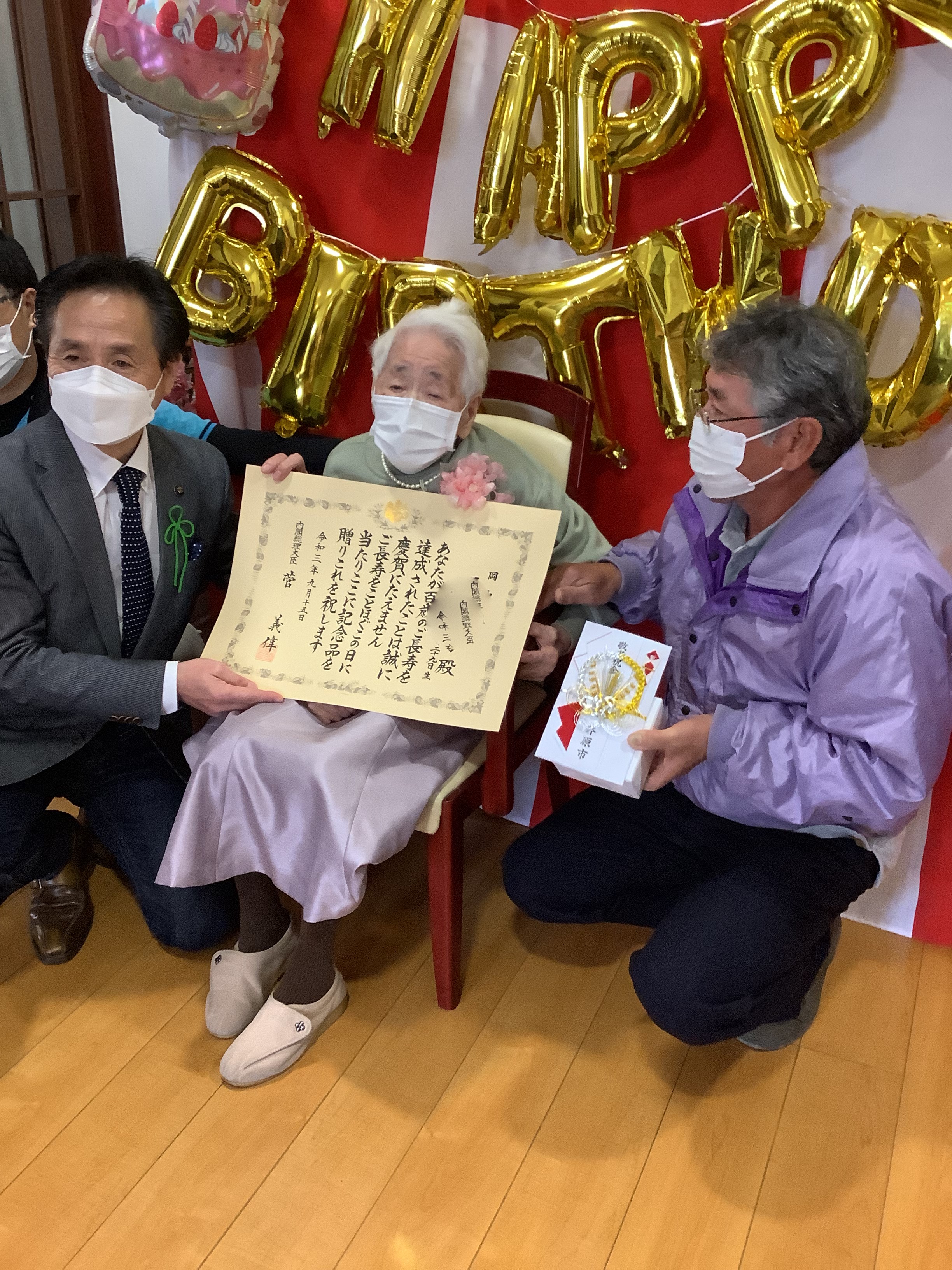 当事業所で100歳を迎えられたご利用者のお祝いをおこないました。
